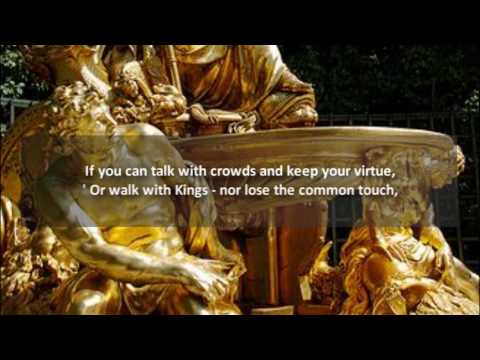 If you can talk with crowds and keep your virtue, ' Or walk with Kings - nor lose the common touch, if neither foes nor loving friends can hurt you, If all men count with you, but none too much; If you can fill the unforgiving minute With sixty seconds' worth of distance run, Yours is the Earth and everything that's in it, And - which is more - you'll be a Man, my son!